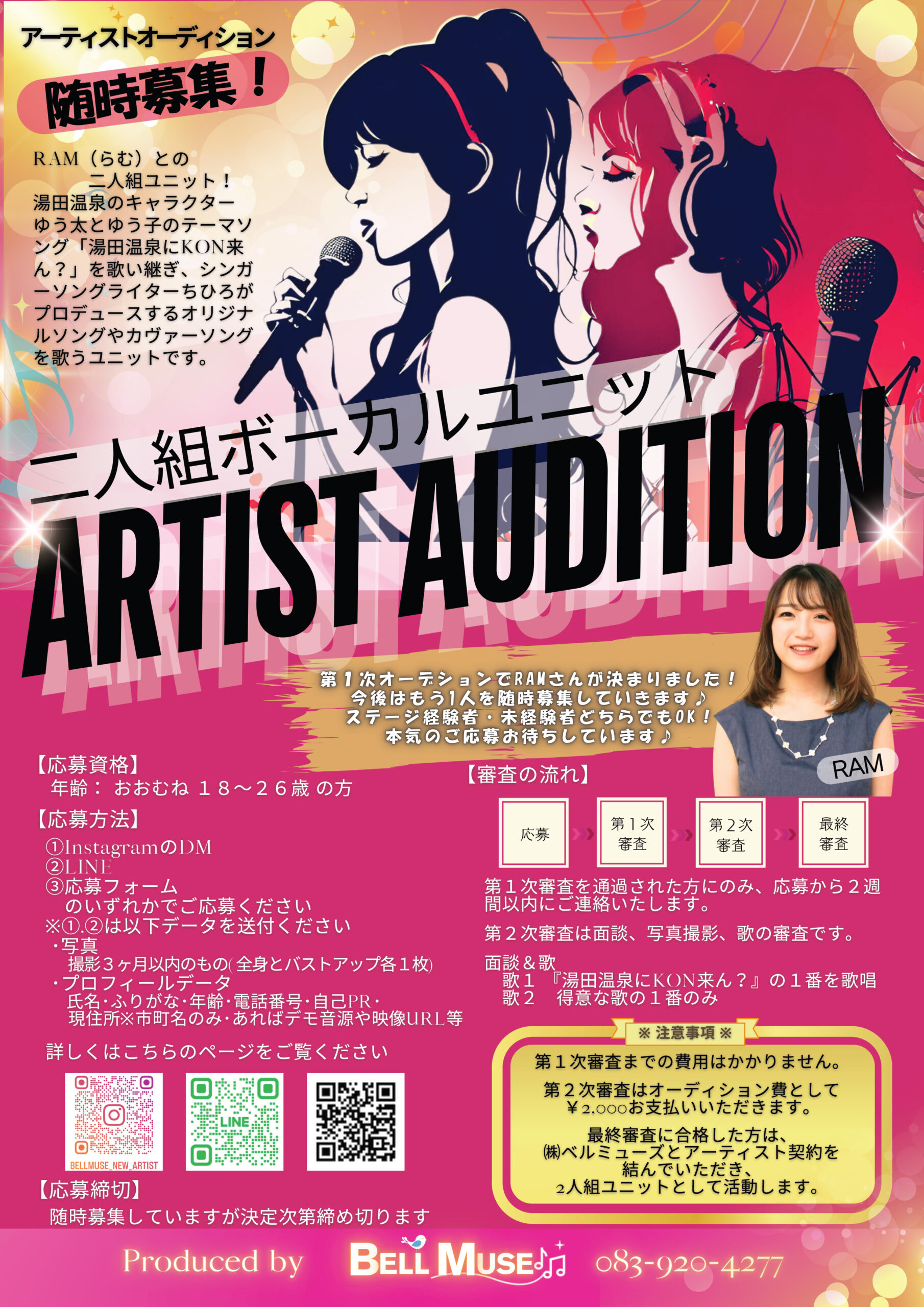 新人アーティスト募集(2人組女性ボーカルユニット)