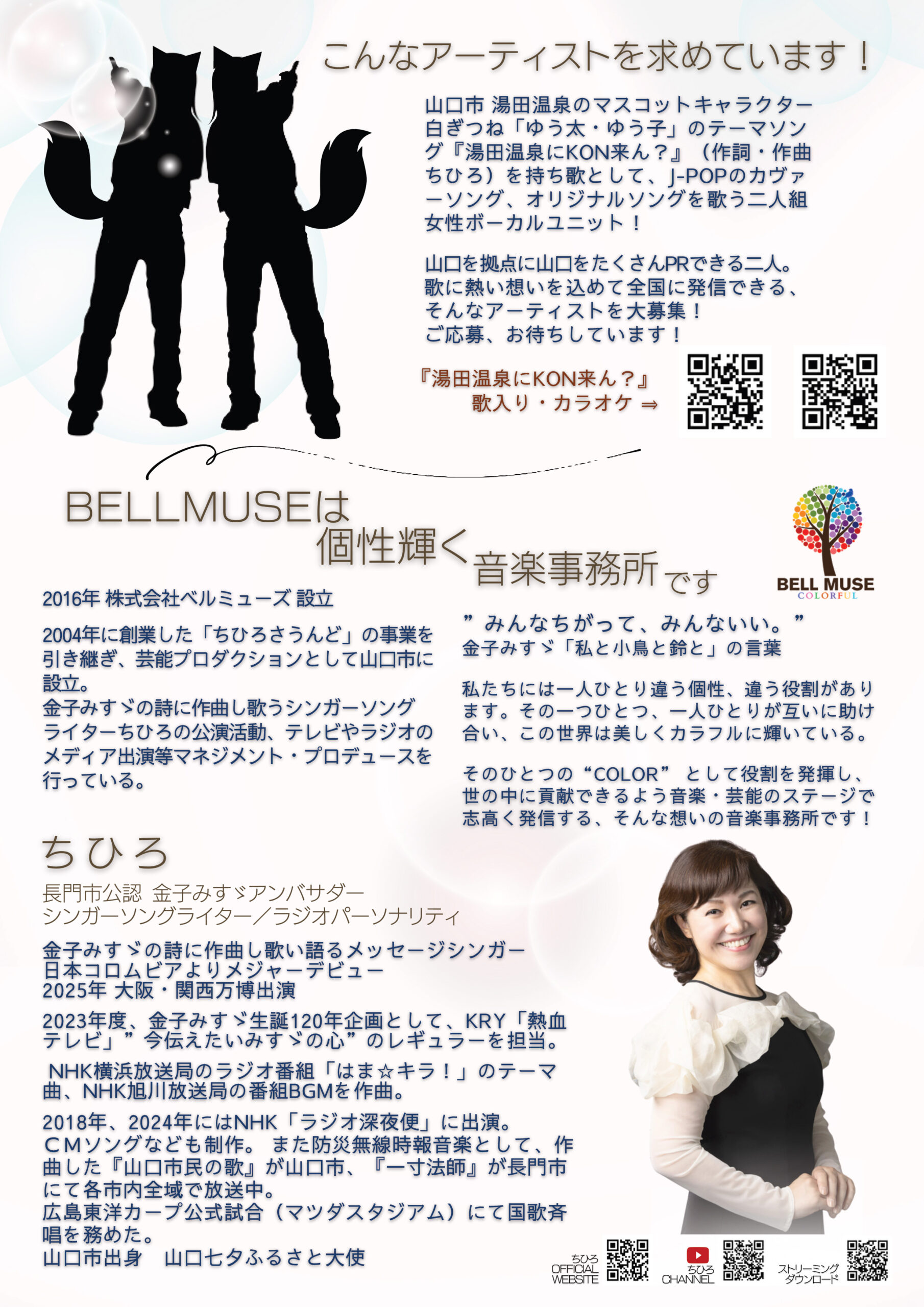 当社の個人情報保護方針に従って個人情報の適正な収集・利用・管理などに取り組んでおり、詳細情報につきましては、当社「プライバシーポリシー」にてご確認ください。第2次審査で歌っていただく『湯田温泉にKON来ん?』動画